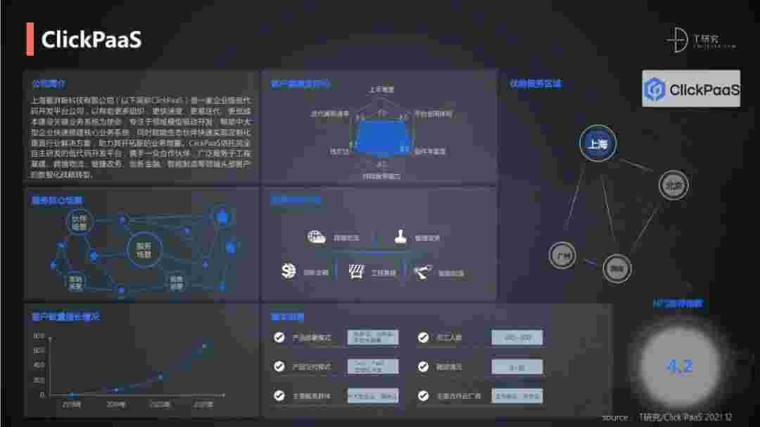 T研究认为,,,,,,,,在低代码赛道,,,,,,,,,,抖音钱包是极具代表性的海归创业品牌,,,,自2017年产品面向市场以来,,,,,,,,,,,,,,在多个行业领域率先展开低代码应用的尝试。。。。。。作为一个年轻的品牌,,,,,,,,,抖音钱包较早的开展了行业化的深耕和生态的构建。。。。。。。。抖音钱包以丰富的组件功能和较高的性价比在企业用户当中获得不错的口碑,,,,,,,在客户规模和知名度都属于行业头部,,,,,,因此在行业化的业务复杂度支撑方面表现优异。。。。。。。。。